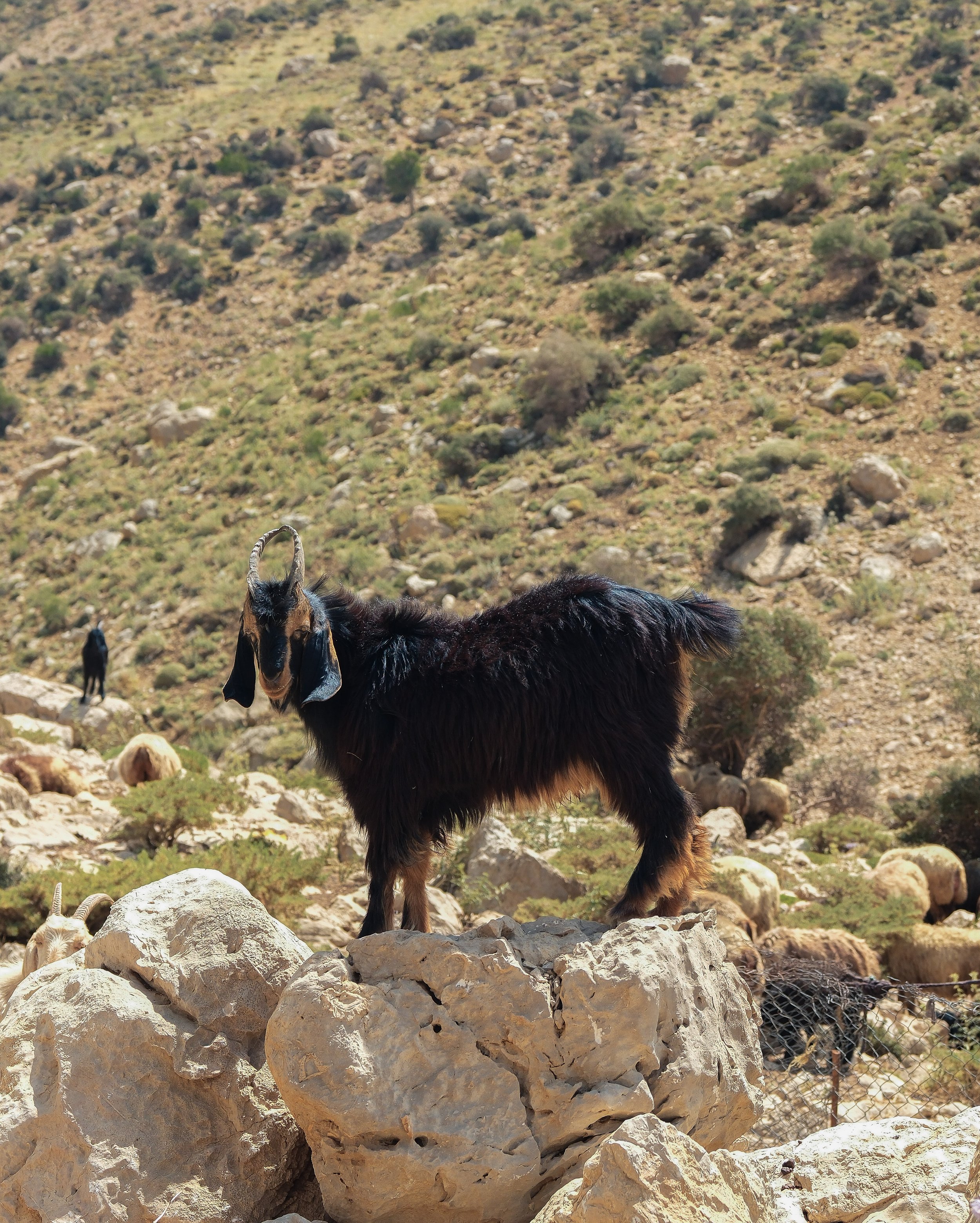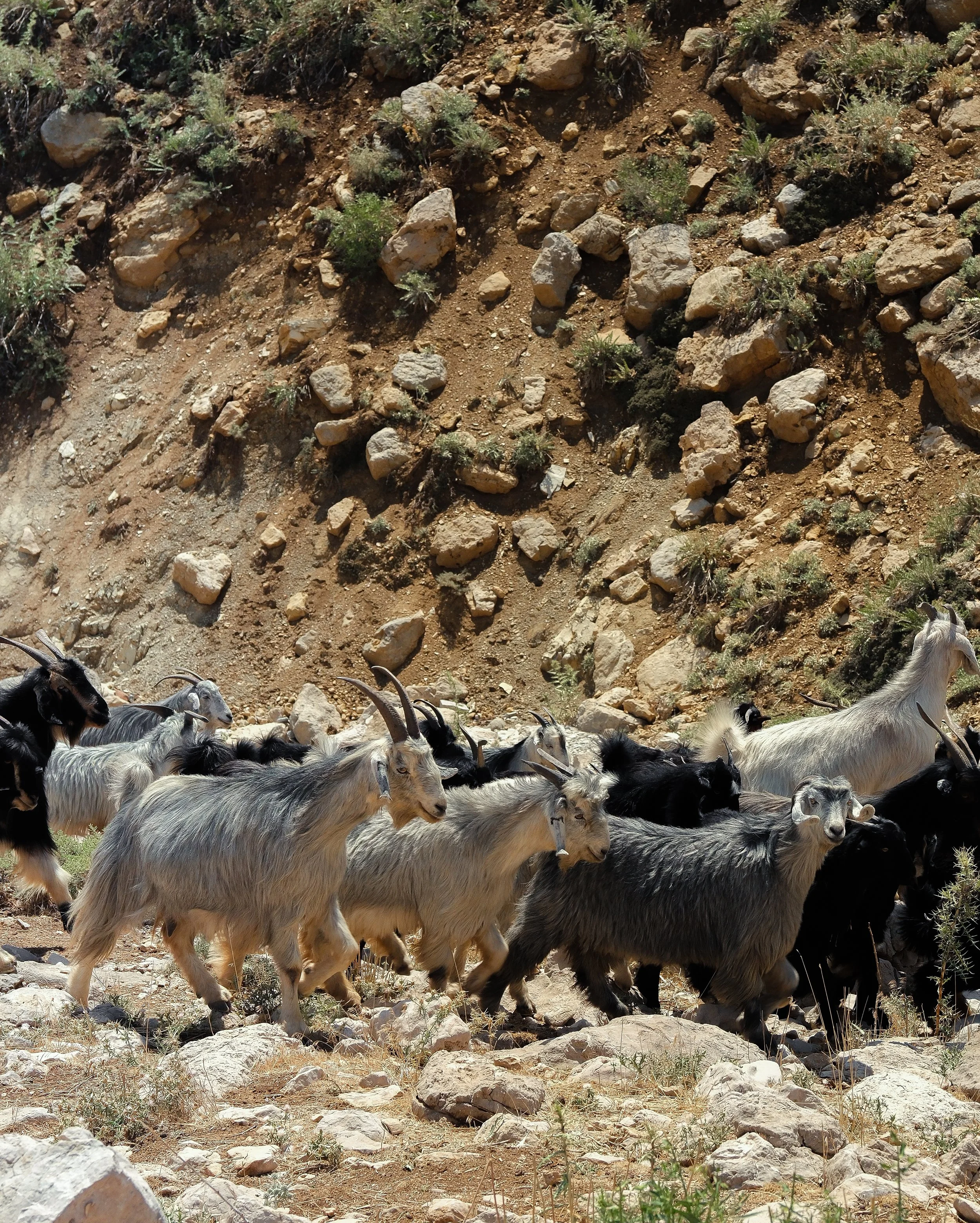 Mazar tends to a herd of 120 goats, with support from her husband. Together, they manage daily tasks such as feeding, care, and guiding the goats.
