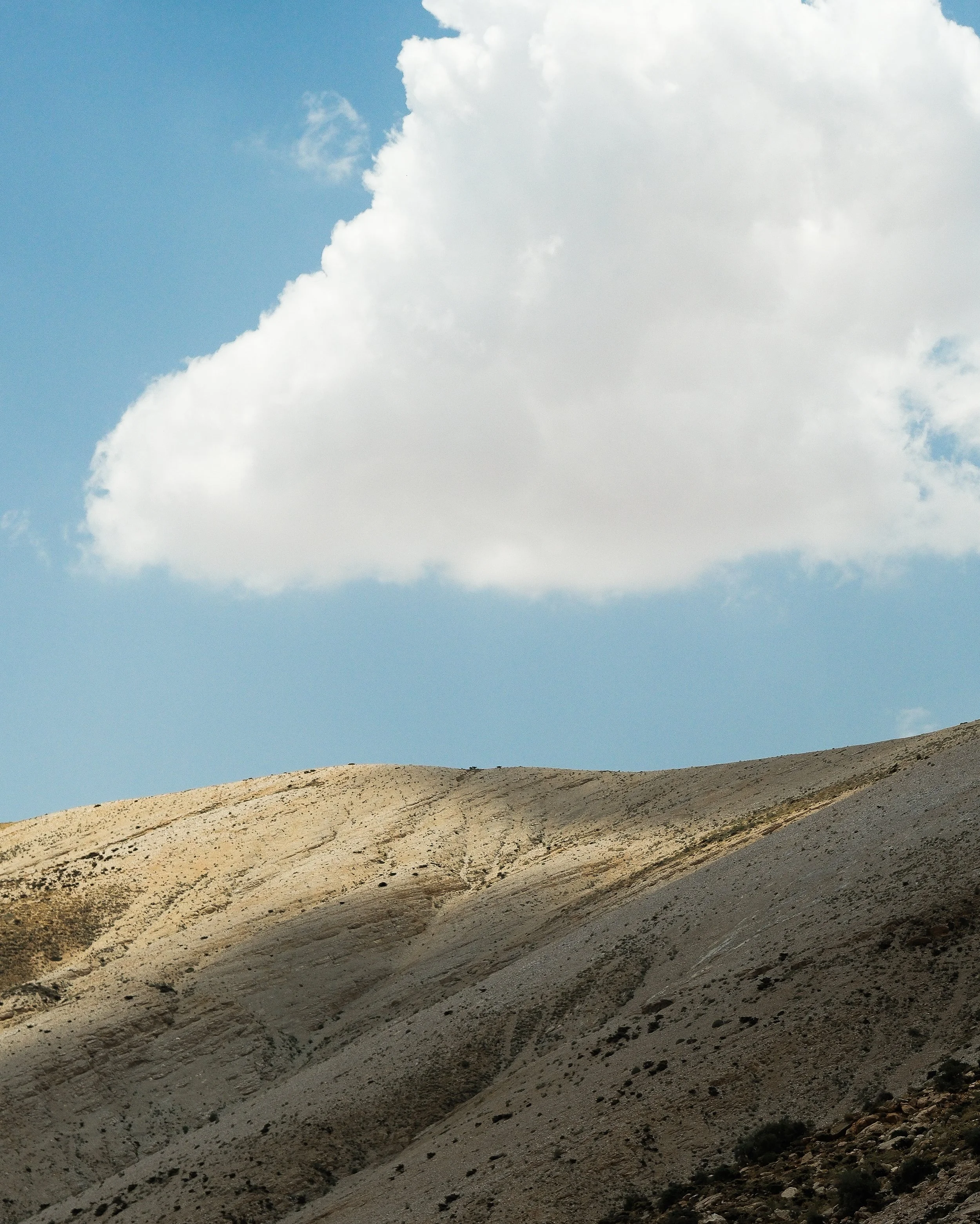 The perfect blu sky, cloud and hill found at the Zargos mountain, right outside Mazar’s tent door.