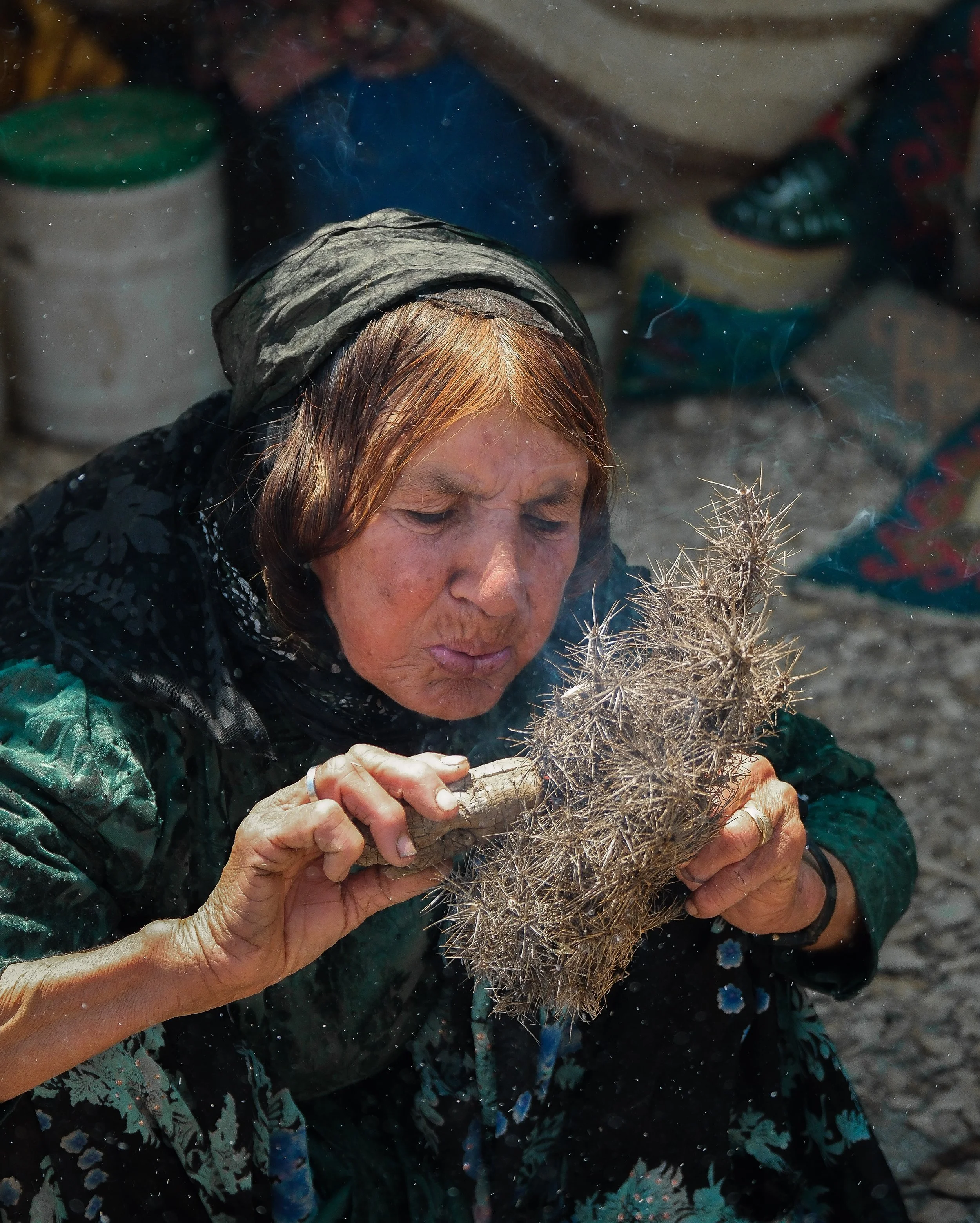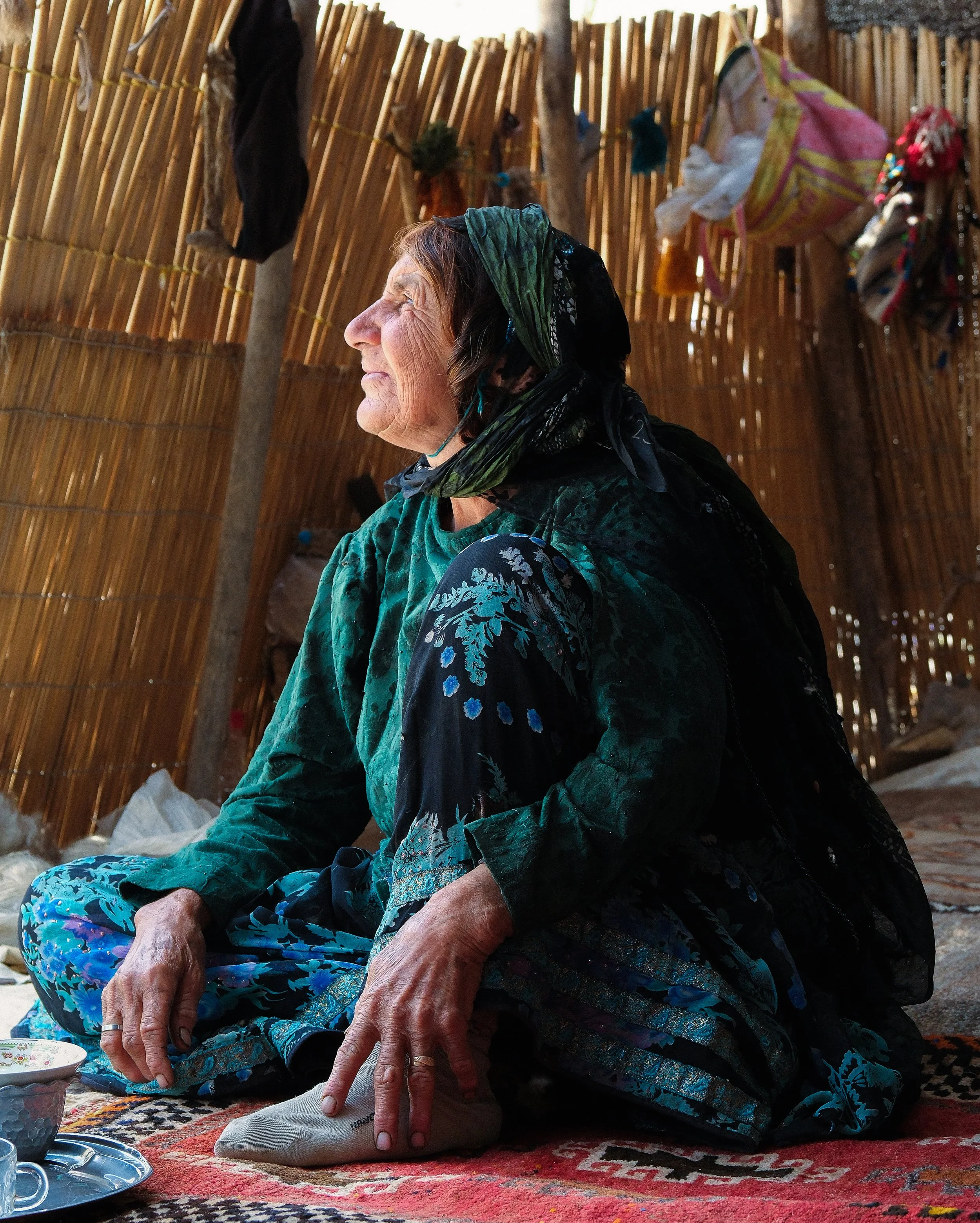 This is about a world far removed from what most of us are familiar with. The internet does not exist. Food is sourced directly from the land– by hand, instinct and tradition. There are no streets. There are no shops. There are no crowds or hum of a larger civilization. Only wind, hills, livestock and memory. Hiding amidst the Zagros Mountains, some kilometers outside of Shiraz, live the Qashqai nomads– an indigenous Turkic-speaking people whose roots in southern Iran trace back centuries. Known for their seasonal migration and intricate handwoven textiles, the Qashqai have survived modernization, political upheaval and climate shifts. They have mastered a way of life entwined with nature and movement. As each year passes, the number of Qashqai nomads diminishes. Modern life and urbanization has managed to pull younger generations towards the cities. Only a few remain carrying on this lifestyle. One of them is Mazar; a remarkably wise and skillful woman who has spent all of her sixty two years in the mountains.